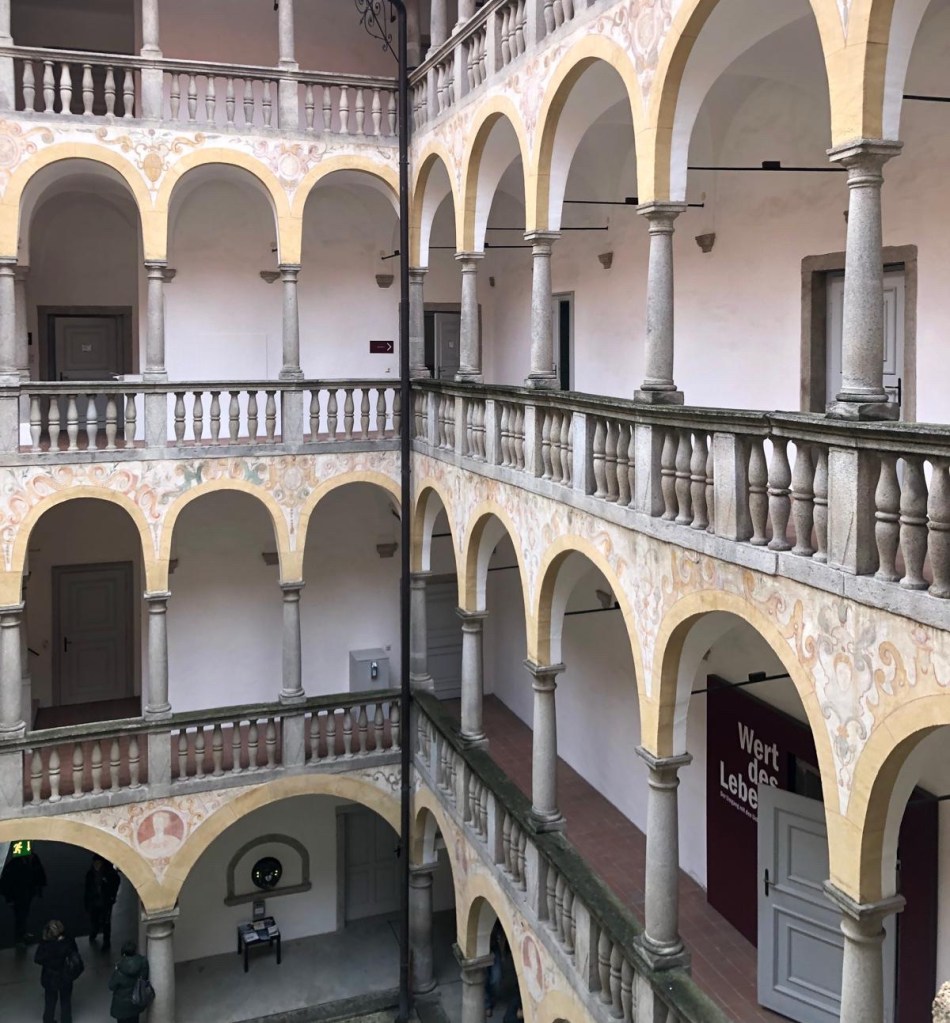 Nel pomeriggio ci siamo diretti al Castello di Hartheim, ci siamo spostati all’interno di una sale dove la guida, dopo un’introduzione iniziale, ci ha accompagnato a visitare il resto del luogo.